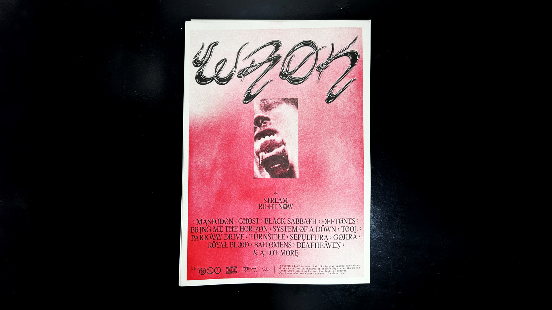 Conceptual project for my personal metal playlist. For the best experience, turn up the volume and listen to the Wrok Playlist.