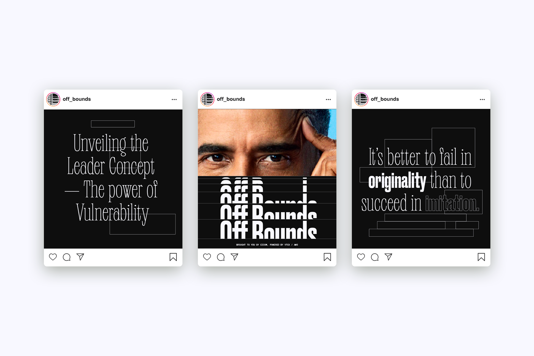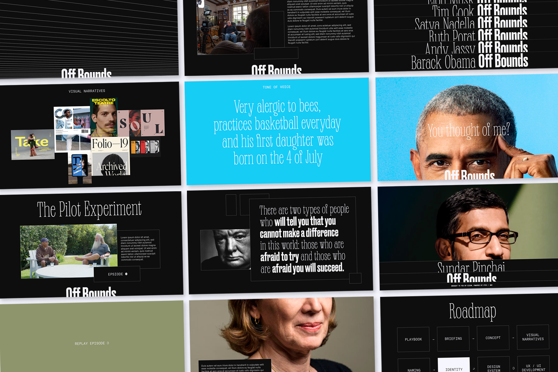 Off Bounds é uma web série que busca desmistificar o conceito de liderança como algo utópico e inalcançável. Por trás de cada trajetória de sucesso, líderes de todas as partes do planeta enfrentam problemas mundanos como nós.A plataforma foi projetada para apresentar à nova geração de líderes que, estas personalidades também são feitas de carne e osso. Por meio de entrevistas informais, convidamos o público a aprender com as vozes mais proeminentes por trás do mercado digital.